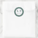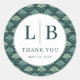 This elegant wedding sticker design features a sophisticated botanical pattern in shades of green and white, creating an inviting and natural atmosphere. The circular layout with clean typography adds a touch of modernity while maintaining a classic feel, perfect for expressing gratitude on special occasions like weddings or anniversaries. With its harmonious color palette and refined motifs, this design conveys warmth and appreciation, making it ideal for heartfelt thank-you notes that celebrate cherished moments.