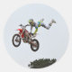 O motociclista do Freestyle pendurado na parte de trás da bicicleta.