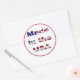 Um adesivo redondo com "Made in the USA" em letras de bandeira americana. Fronteira vermelha. Ver o vinil autocolante, o confetti, o saco de favores, a etiqueta de favor, a etiqueta e o papel de embalagem. Veja toda a coleção de adesivos Patriotic 40s nos CONVITES | Seção Stickers & Labels