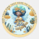 Adesivo Redondo Fada Africana Aniversário Teal Dourada Pink Prince
