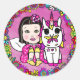 Adesivo Redondo Fada Magenta Asiática e Unicórnio