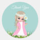 Adesivo Redondo Fadas e flores no azul claro Obrigado