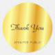 Modelo de Monograma de Agradecimento com Aparência Metálica Dourada em Letra Cursiva Adesivo Redondo Clássico e Elegante.
