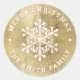 Os adesivos personalizados para presentes de Natal apresentam falso escamas de neve de ouro decorativo e sua mensagem personalizada, moderna e moderna.