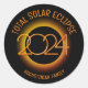 Personalizado 2024 TOTAL SOLAR ECLIPSE Round Sticker, com TEXTO PERSONALIZÁVEL, para celebrar o Total Solar Eclipse sobre os EUA Continental, Canadá e México em abril de 2024. O TEXTO PERSONALIZÁVEL lê TOTAL SOLAR ECLIPSE e [FAMILY NAME] WATCH PARTY. Você pode usar o campo de texto curvo superior para uma frase mais longa, se necessário (e excluir o texto curvo inferior). A design mostra um eclipse solar com efeito dourado 2024 no meio. Comprar estes adesivos do eclipse solar para toda a família ou para os seus convidados da festa! A totalidade valerá a pena!