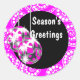 Palitos redondos festivos, elegantes e vibrantes com as palavras Saudações de Season cercadas por uma bolinhas branca, um padrão retrô e duas bolas de natal brilhantes de FAUX que têm um padrão celta de nó em rosa brilhante e uma cinza prateada. PERSONALIZAR TI - Personalize o texto e use-o para decorar seus produtos de papel e apresente esta estação de Natal. São ideais para os desejos do final do ano também para clientes e clientes.
