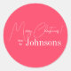 Este é um na moda, Feliz design de Natal. Está em tendências a rosa e branco modernos e tem a mensagem "Feliz Natal! dos Johnsons". Ideal para o seu presente de Natal, acessórios de correspondência, selos de envelopes e selos de festas nesta época festiva. Para personalizar, basta adicionar seu nome na caixa personalizar este texto. Aqui você também pode mudar o resto do texto se quiser. Verifique a ferramenta de edição de design para alterar a cor ou a fonte. Feliz Natal! Se você precisar de ajuda com personalização, produtos correspondentes ou para um e-mail de design personalizado: ursuladawnmoon@gmail.com