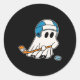 Adesivo Redondo Fantasma Engraçado Jogando Hockey Halloween