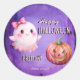 Adesivo Redondo Fantasma rosa e fofo do Dia das Bruxas Feliz