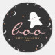 Um belo adesivo de halloween personalizado com fantasmas engraçados bobos, texto "boo" a rosa, e borrifas de luas prateadas e estrelas coloridas. Personalizar com mensagem de saudação curta e/ou ano. Excelente pelo favor do partido temático Halloween.
