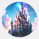 Etiquetas de castelo mágico com nuvens cor-de-rosa.