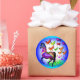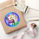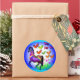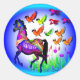 Cavalo carrossel com um bando de papagaios, todos em cores muito brilhantes neste adesivo, excelente para envelopes, coleta e troca.