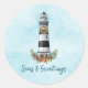 Adicione uma vibração costeira aos presentes de férias e envie um e-mail com estes adesivos náuticos de Natal do farol de aquarela. Você pode mudar facilmente a mensagem se quiser. Verifique a coleção para produtos correspondentes. Se você quiser mais produtos ou outras formas de cores compatíveis, entre em contato comigo através do Zazzle Chat.