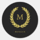 Adesivo Redondo Faux Dourado Laurel Wreath em preto com monograma