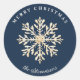 Adesivo Redondo Faux Gold Snowflake Navy Blue Custom Holiday