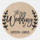 Estas selas de envelopes de casamento rústicos de falso chic são perfeitas para um casamento de moda. A design apresenta uma tipografia divertida, escrita à mão, com deliciosos laços e espirais cercados por uma simples coroa de oliveiras. Personalize o rótulo com os nomes da noiva e do noivo. Por favor, observe que isto não está impresso em papel kraft real. É um gráfico de alta qualidade feito para parecer papel kraft.