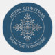 Adesivo Redondo Faux Silver Snowflake Sobre Azul (Folha Não Real)