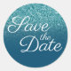 Adesivo Redondo Faux Teal Glitter Ocean Blue Ombre Salvar Data