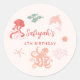 Cute debaixo do mar, festa de aniversário favorita adesivo com ilustração de animais oceânicos.