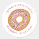 O adesivo redondo clássico com Festa de aniversário cor-de-rosa-branca e favorito apresenta rosquinhas desenhadas à mão bonitas com pulverizadores e glacés coloridos.