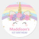 Adesivo Redondo Favor de Agradecimento de 1º Aniversário do Unicór
