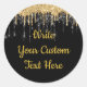 Adesivo Redondo Brilho Dourado Preto Favor de Aniversário com Gote