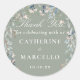 Adesivo de agradecimento de favor de casamento verde sálvia com lindas flores e folhagens em aquarela. Personalize com sua informação especial de agradecimento em tipografia chic. Criado por Thisisnotme©