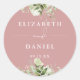 Adesivo de verde floral rosa poeirento elegante personalizado com seus nomes e data especial. Projetado por Thisisnotme©