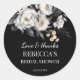 Modelo de adesivos de agradecimento para chá de lingerie boho preto e branco temperamental com flores de peônia, folhas secas e grama pampas