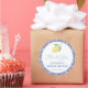 Adesivos de agradecimento para qualquer evento (mostrados aqui para um chá de noiva, mas todos os campos de texto são personalizáveis). O design apresenta uma simples ilustração de limão em aquarela e uma borda de azulejo vintage azul e branco.