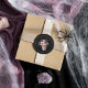 Um design de chá de noiva de Halloween chique e assustador com uma ilustração de caveira floral encimada por flores de aquarela rosa e roxa em um fundo preto defumado. Personalize com texto personalizado em um layout circular. Perfeito para selar seus convites de chá de noiva ou como um toque final para os favores.
