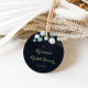 Este adesivo de favor de chá de noiva floral azul eucalipto dourado é perfeito para um chá de noiva simples. Este design artístico apresenta flores douradas desenhadas à mão e folhagem verde de eucalipto em aquarela em um fundo azul escuro, inspirando a beleza natural.