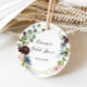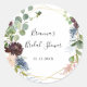 Este adesivo de favor de chá de noiva geométrico dourado borgonha é perfeito para um chá de noiva moderno. O design boho elegante apresenta flores em tons de azul naval aquarela, rosa e vinho com detalhes artísticos a lápis.