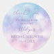 Adesivo de favor de chá de noiva sonhador e romântico com ilustração em aquarela de céu rosa, roxo e azul com estrelas e nuvens.