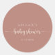 Este adesivo de favor de chá de bebê de terracota com caligrafia é perfeito para um chá de bebê rústico. O design simples e elegante apresenta tipografia de letra cursiva clássica e sofisticada.