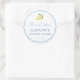 Este design moderno de adesivo apresenta uma borda "ondulada" desenhada à mão na moda com um limão aquarela pintado à mão contra um fundo branco para um sentimento fresco e estival adorável. Mostrado aqui para uma chuva de noiva, o texto pode ser personalizado para qualquer evento.