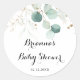 Adesivo Redondo Favor de Chuvinha de Bebê Floral Ouro Eucalipto Rú