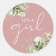 Adesivo Redondo Favor de Chuvinha de Bebê Rosa Poeira É uma Menina