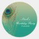 Adesivos de Favor de Festa Boho Areia de Pena de Pavão e Azul Turquesa. Personalize com qualquer texto que você quiser.