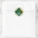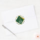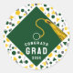 Etiquetas criativas de favor de festa de formatura e adesivos de presente, apresentando um boné verde com um borla dourada em fundo de confete. Edite o texto para adicionar o nome do graduado e o ano da turma.
