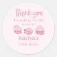 Adesivo de favor de festa de noivado tema do Dia dos Namorados fofo e doce com ilustração de macarons em forma de coração rosa. O texto diz "obrigado por tornar nosso dia tão doce."
