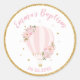 Adesivo Redondo Favor do Batismo Floral Quente de Ar Quente Rosa