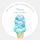 Tema de chá de fraldas giro e bonito favorece o adesivo com sorvete de cor d'água ilustrando sorvetes verdes azuis e de menta em um cone de waffle. Perfeito para o chá de um menino no verão.