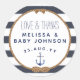 Os adesivos de chá de fraldas "Obrigados e amor" dos grupos temáticos são perfeitos para o seu chá de fraldas náutico! A design apresenta uma corda circular e "nó infinito", letras divertidas de mão combinadas com a tipografia de blocos modernos, e espaço para dois nomes e a data. #Náutico #BabyShower #ItABoy