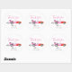O tema moderno do carro de corrida favorece o adesivo com a ilustração aquarela de um carro vintage rosa com chamas vermelhas.