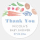Este simples obrigado que você cola apresenta minhas ilustrações originais de aquarela (de frutas e vegetais de verão). Aqui mostrada uma Chá de fraldas para dar boas-vindas a um menino, mas todo o texto pode ser personalizado para as suas necessidades.