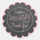 Um moderno e popular chic chalkboard parece um favor de convidado chá de fraldas, adesivo. Personalizado com o nome da futura mãe e data de chá de fraldas. Um círculo de flores em escala bonito e divertido. Altere a cor da fonte. Para ver os produtos correspondentes, visite minha loja "The Hungarican Princess" em www.zazzle.com/hungaricanprincess*. Olhe na minha categoria de departamento "Oh Baby". Parabéns!