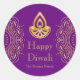 Púrpura e dourada, adesivo Diwali com padrão indiano. Perfeito como partidário em favor de adesivos, etiquetas de presentes ou selos de envelopes para os seus convites de festas.