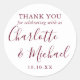 Assinatura burgundia favorece obrigado seu adesivo redondo clássico com nomes de estilo de assinatura. Personalize com seu obrigado especial suas informações em tipografia de burgundy chic. Projetado por Thisnotme©