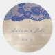 Adesivo Redondo Favor Ivory Beige Blue Marinho Lace Obrigado
